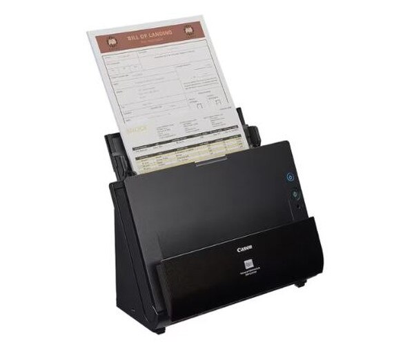 Document scanner features a space-saving, upright design to free up valuable desk space. Its flexibility and high image quality are only surpassed by its ease of use, making it perfect for converting paper-based documents to digital files. Wi-Fi capability allows it to be used with smartphones or tablets and shared among multiple users. Scanning at up to 25 pages per minute, both sides of an item at the same time, this scanner can reliably handle thick or thin pages, cards, long documents and more. Double-feed detection helps to ensure that no data is lost. Files can be saved as PDF, PDF/A, JPEG, TIFF, PPTX, BMP or PNG to integrate with many different software programs. The bundled Canon CaptureOnTouch software enables you to configure routine scan jobs for quick and easy one-touch access. It can also save scanned images directly to cloud applications, such as GoogleDrive, Microsoft SharePoint, Dropbox and more.