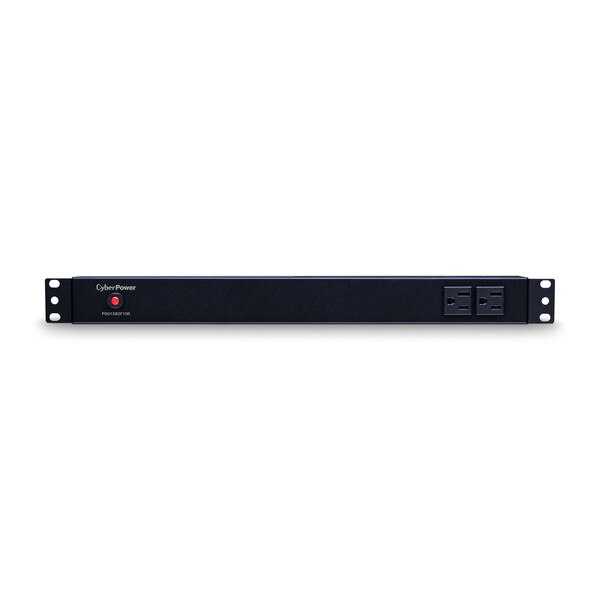 The CyberPower PDU15B2F10R, a 12-outlet (2 front, 10 rear) rackmount basic power distribution unit (PDU), provides 120V 15A output. It distributes power to 12 NEMA 5-15R receptacles from a single NEMA 5-15P input with unfiltered electrical pass-through. Designed for datacenters and other electrically demanding applications, the PDU15B2F10R has rugged, industrial-grade metal housing and a 15-foot AC power cord. It can be mounted either horizontally or vertically, includes a cord retention tray, and is ETL/RoHS certified. A limited lifetime warranty covers defects in materials and workmanship in the product under normal use and conditions.