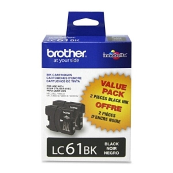 Get better-looking photos when you use the 2-Pack Brother LC61 Innobella Black Ink Cartridges with compatible printers. This ink cartridge is designed for use with Brother Innobella glossy paper to produce vivid, natural-looking photos with a smooth, quality finish. Compatible with a variety of Brother printers, these standard ink cartridges can also be used to print text-based documents and yield up to 450 pages per cartridge. Includes 2 cartridges of black printer ink Each cartridge yields up to 450 pages Compatible with Brother MFC290C, MFC490CW, MFC5490CN, MFC5890CN and MFC6490CW printers Designed for use with Brother Innobella paper to create photos with vivid colours and a smooth, natural-looking finish