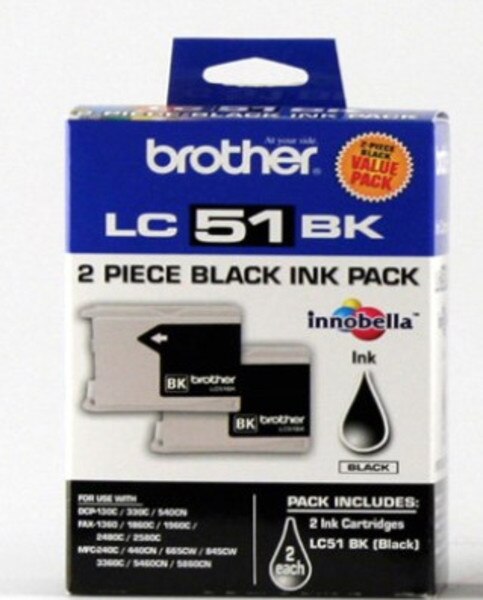 Enjoy the simple-to-install design of these black ink cartridges. With two cartridges in each pack, downtime is mitigated, so printers can keep churning out important documents, and the ink dries fast to prevent smears and smudges. These Brother ink cartridges have print yields of up to 500 pages, so they're a solid pick for small offices or home use. Yields up to 500 pages The package includes two black inks Brother technology is the guarantee of continuously accurate printing in any situation Comes in two cartridges per pack Compatible with: Brother DCP-130C, DCP-330C, DCP-330CN, DCP-350C, DCP-540CN, MFC-230C, MFC-240C, MFC-3360C, MFC-440CN, MFC-465CN, MFC-5460CN, MFC-5860CN, MFC-665CN, MFC-665CW, MFC-685CN Innobella ink technology provides high-quality print with vivid colours and better definition designed as part of an entire printing system to provide a superior degree of quality